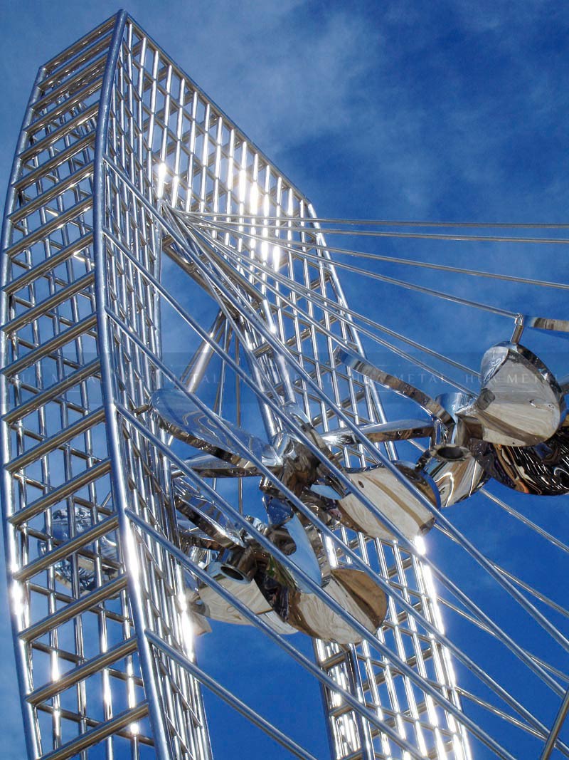 This art steel structure named sailing, based on architectural design combined with sculpture shape which is stand 21 meters (68ft) high and 23 meters (75ft) wide, made by 316 stainless steel tube and plate. It's surface use high mirror polished, finished at the year of 2016. The whole shaped architectural art steel structure not only shows the surface shape different from the ordinary building structure, but also embodies an artistic creation and beauty in modeling......
